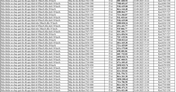 Danh sách biển số phương tiện vi phạm tốc độ trên Quốc lộ 1A