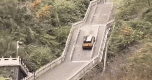 Thảm họa SUV Trung Quốc trượt dốc và làm vỡ lan can khi leo 999 bậc đá lên đỉnh núi